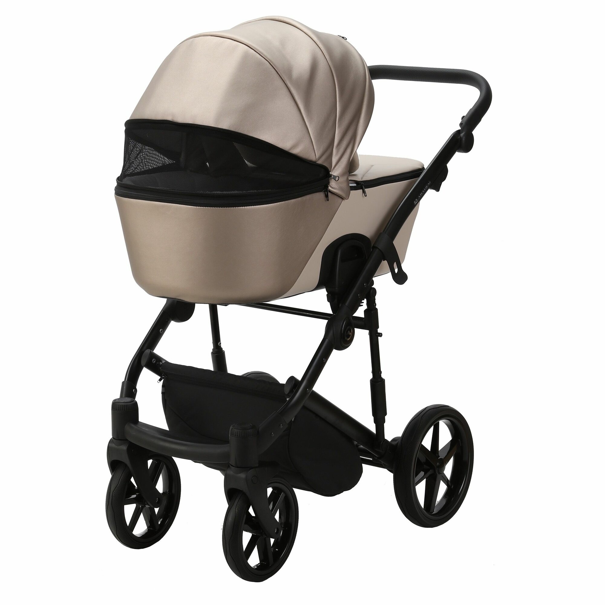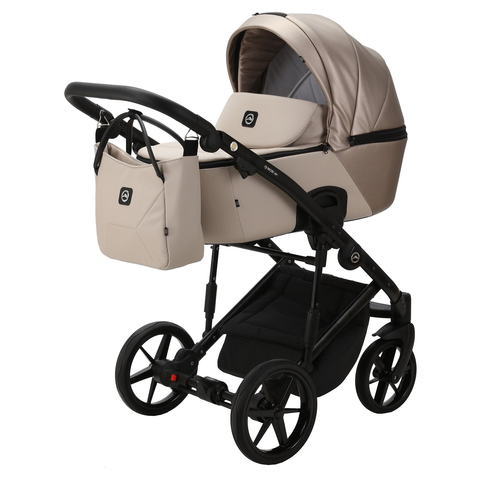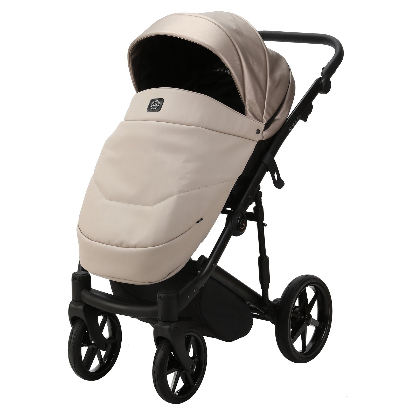 Коляска универсальная Adamex Mobi Deluxe 2 в 1, M-SD16 - Черная матовая, темно-бежевая перламутровая эко-кожа