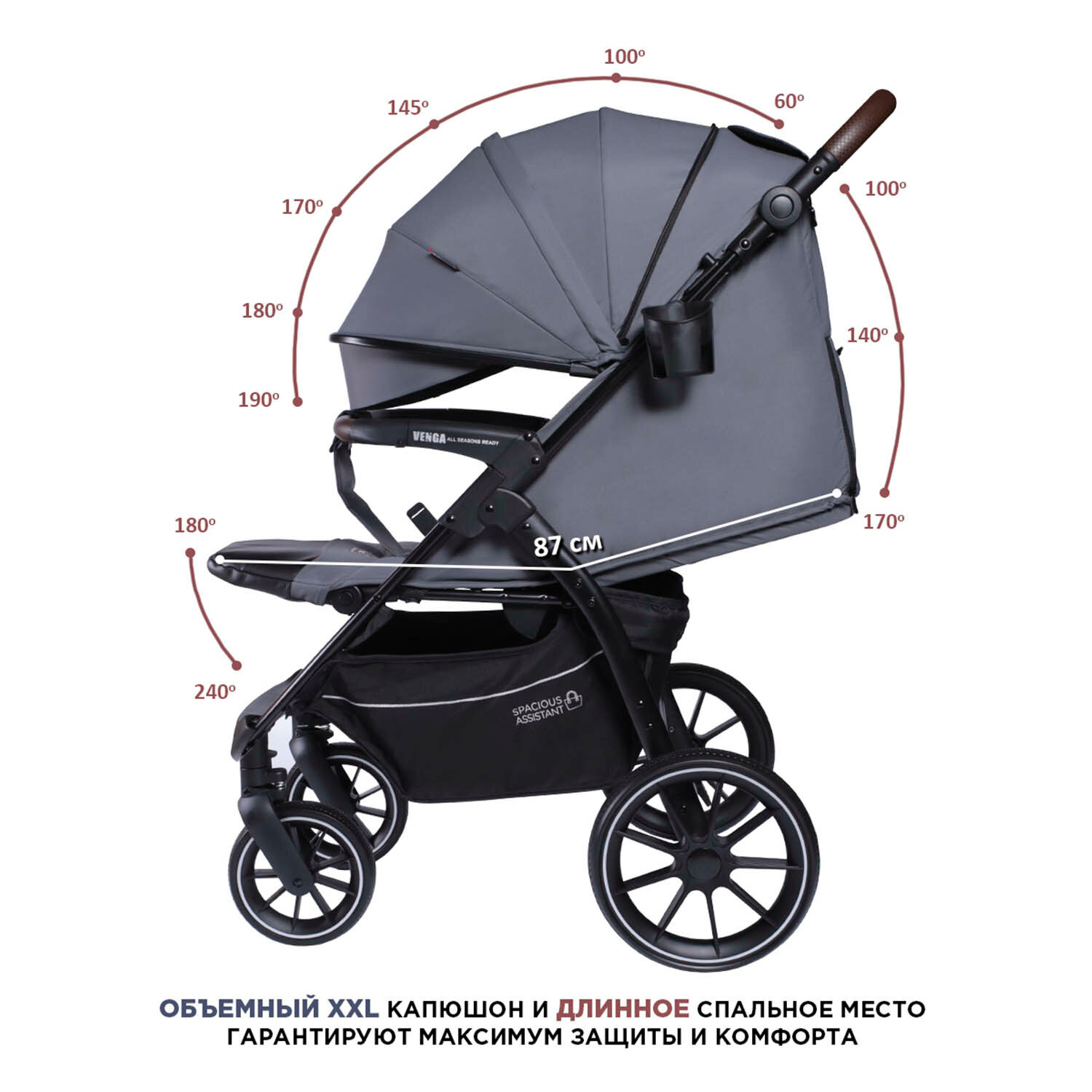 Купить Коляска детская прогулочная Venga, всесезонная с накидкой для ног, большим капюшоном, полная комплектация, Babycare, темно-серый