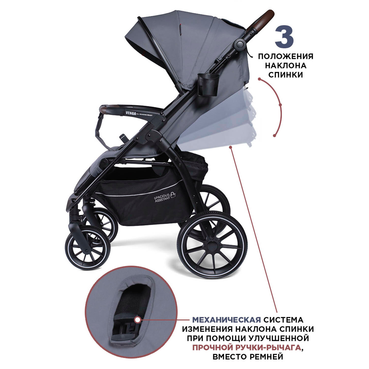 Коляска детская прогулочная Venga, всесезонная с накидкой для ног, большим капюшоном, полная комплектация, Babycare, серый меланж