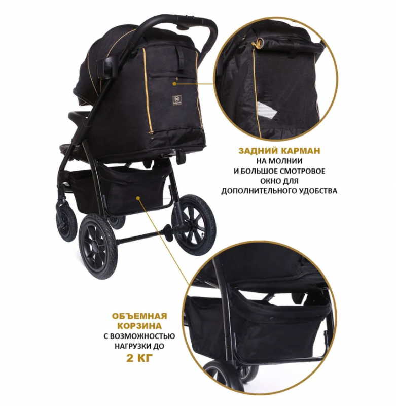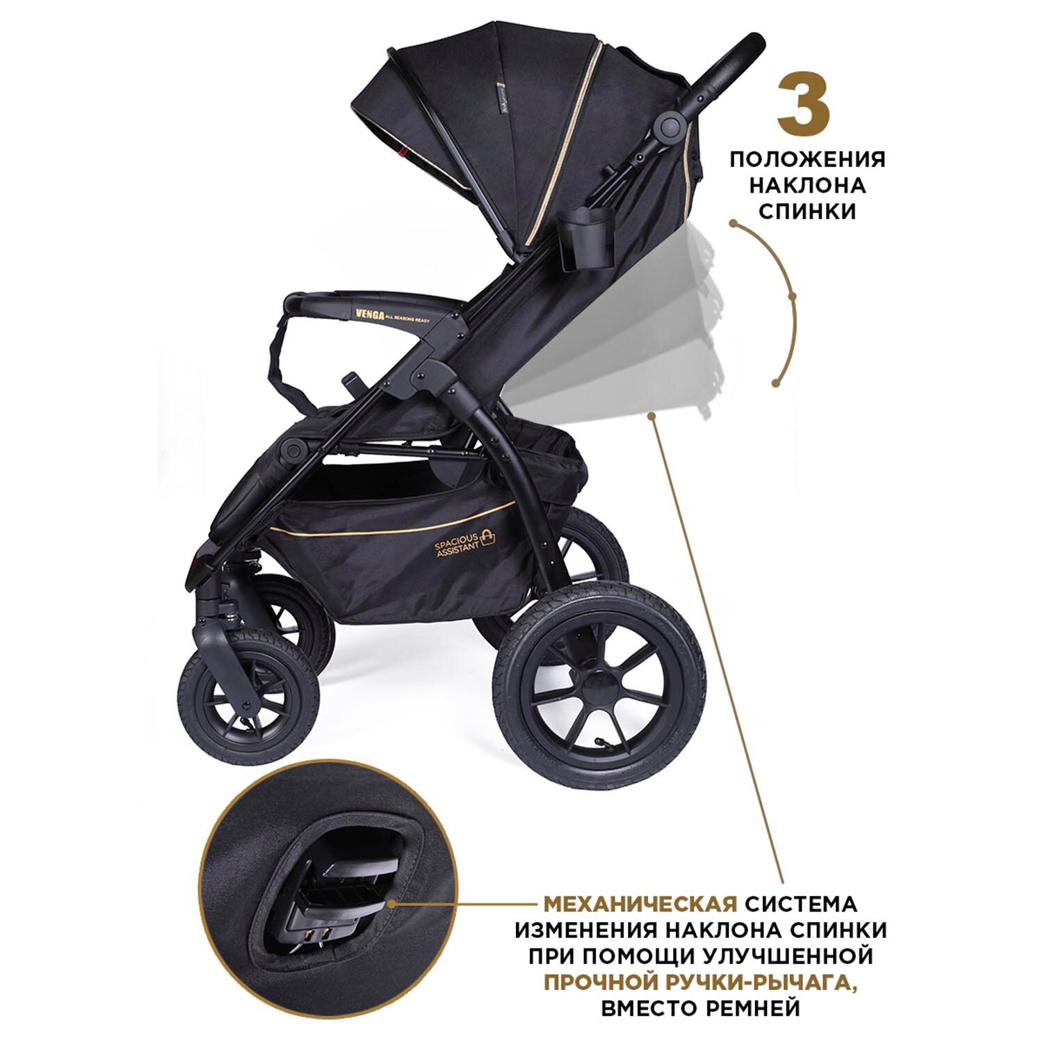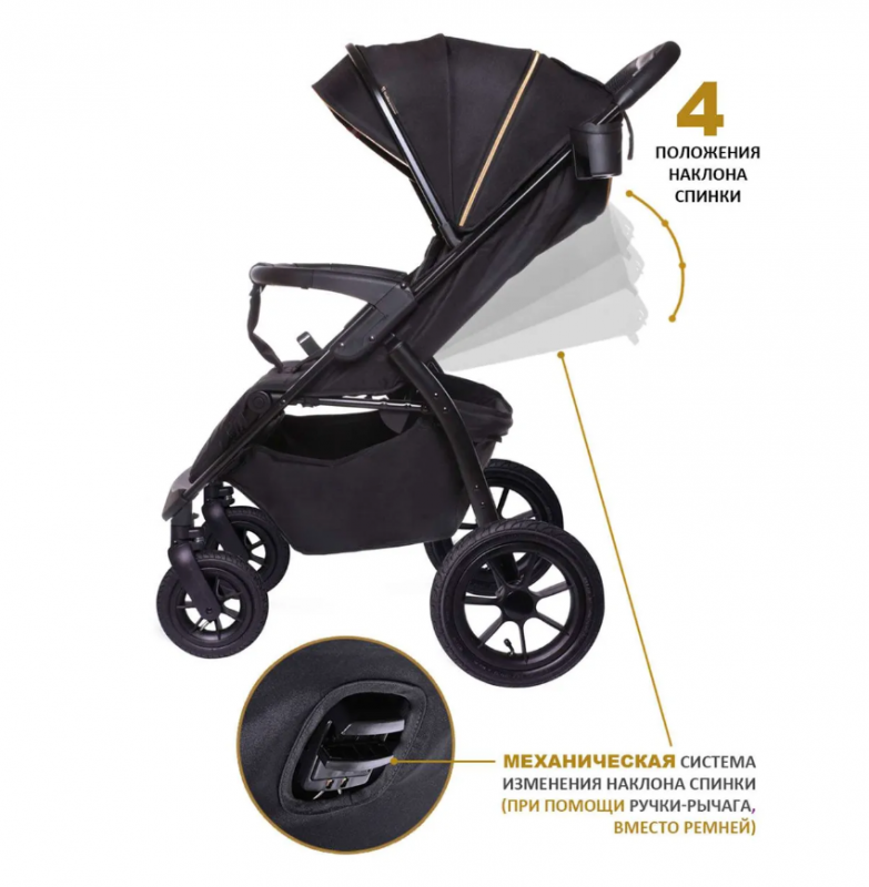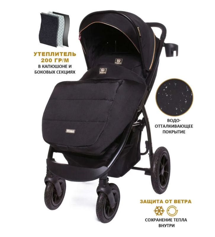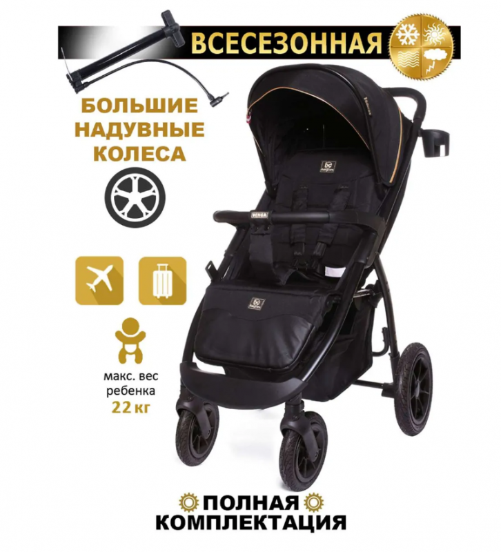 BabyCare Venga Прогулочная коляска с надувными колесами, до 22кг, чёрное золото