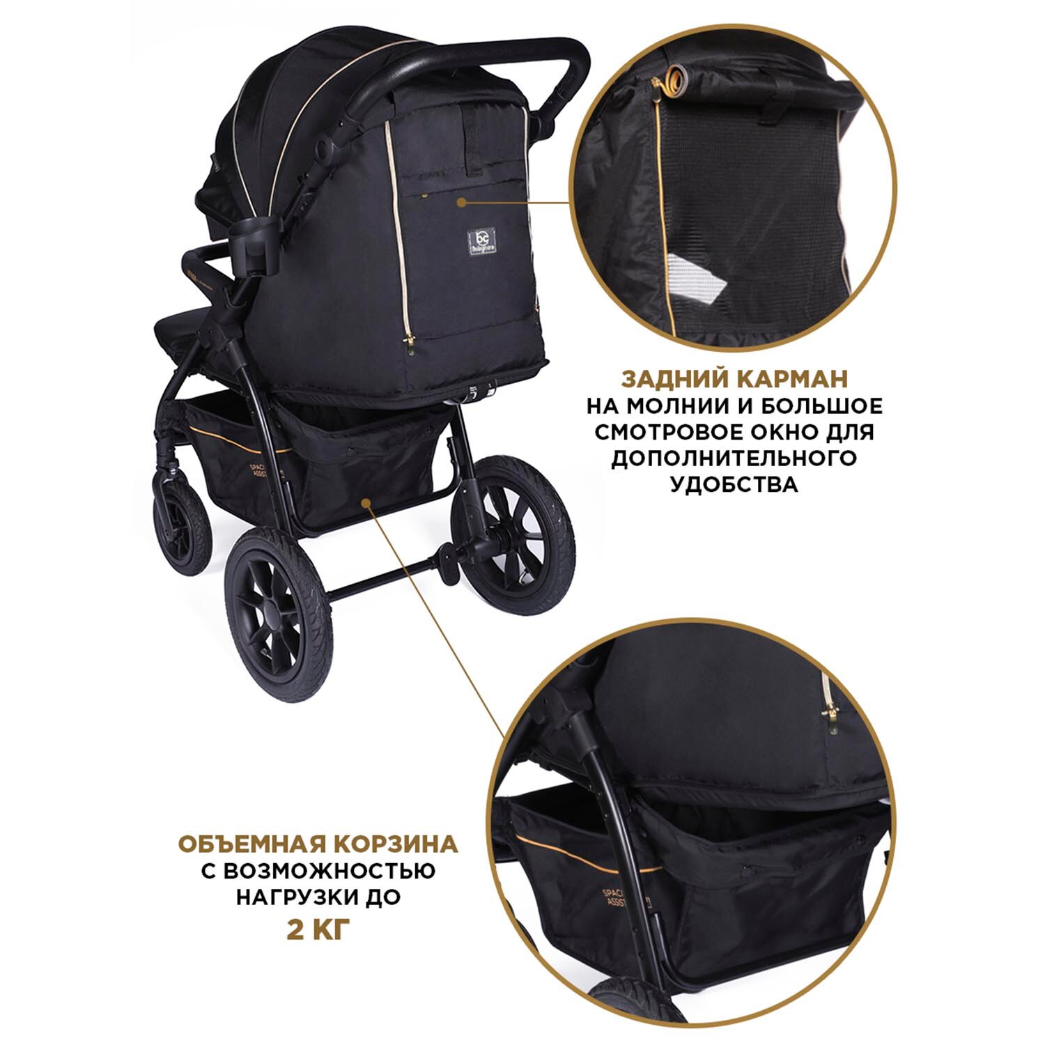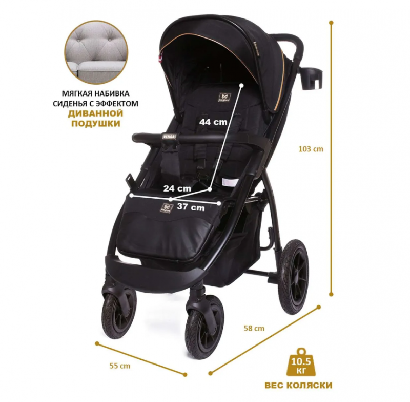 СохранитьКоляска прогулочная Babycare Venga C198 Air черное золото интересное: