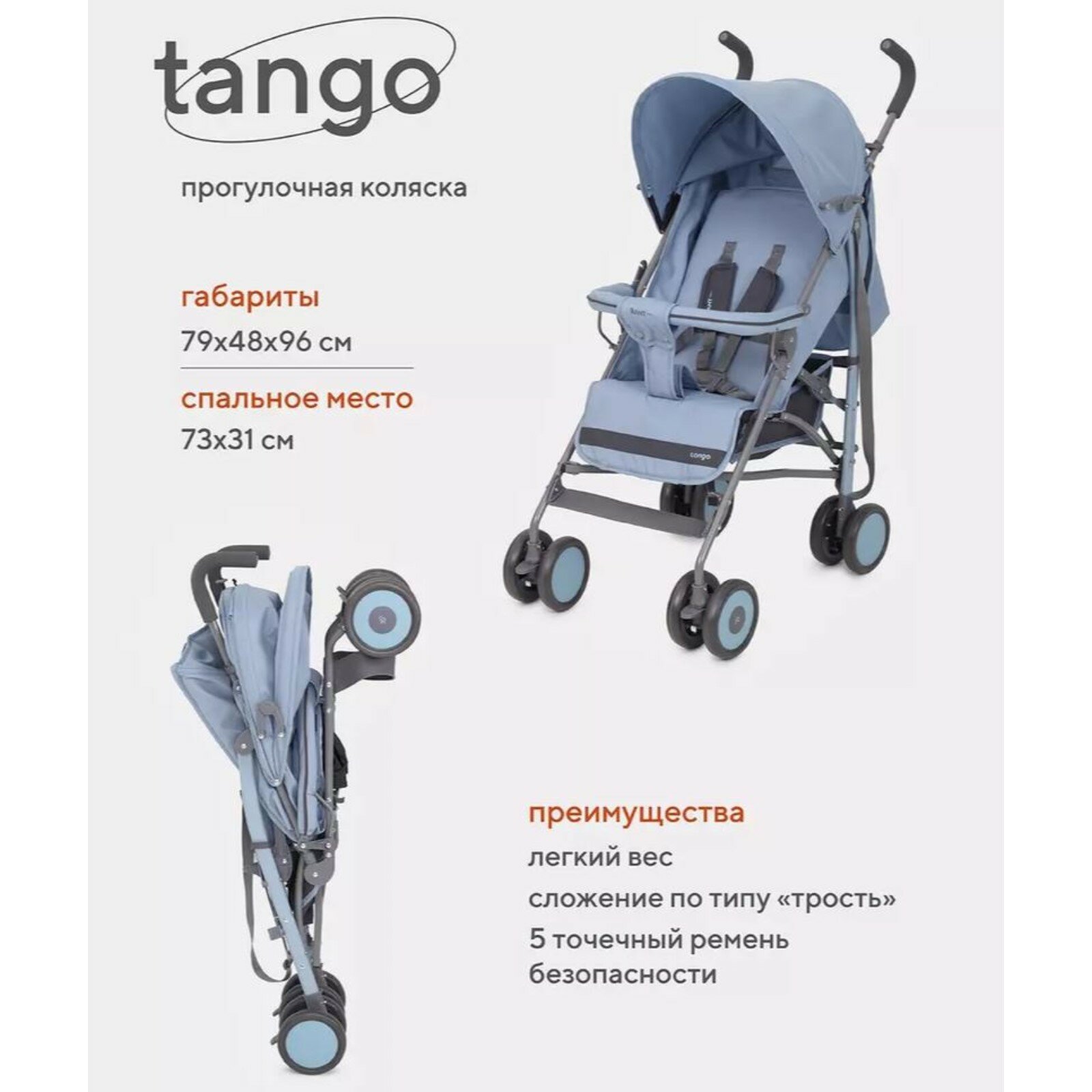 Прогулочная коляска для детей, трость, летняя коляска, складывается, цвет синий интересное: