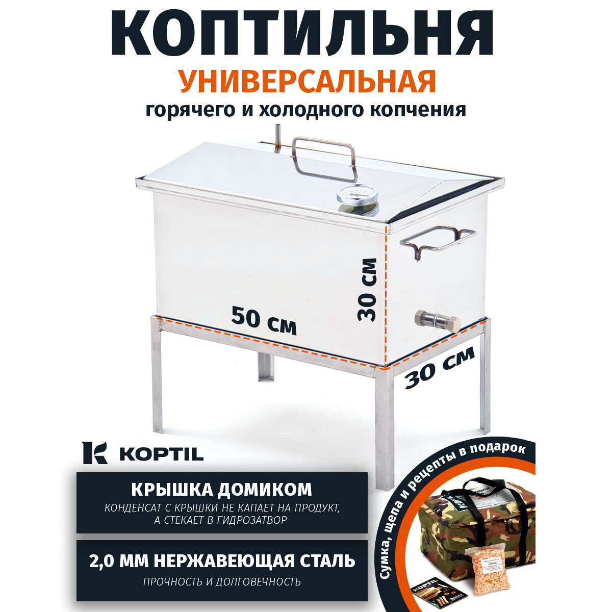 Коптильня "Универсальная" 50х30х30 2,0 мм горячего и холодного копчения + подставка интересное: