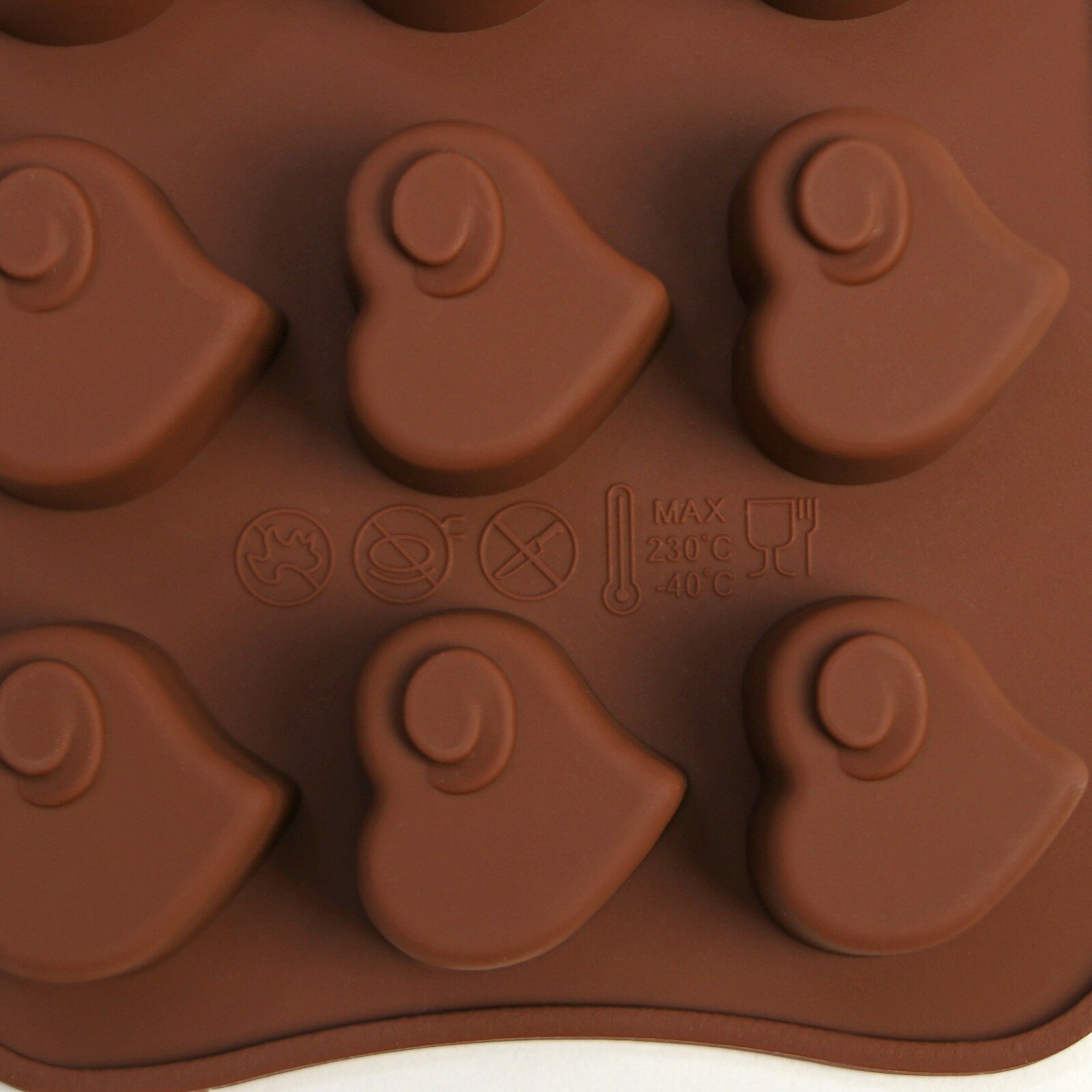 Форма для шоколада Доляна «Сердцеедка», силикон, 21,5×11×1,5 см, 15 ячеек, цвет коричневый