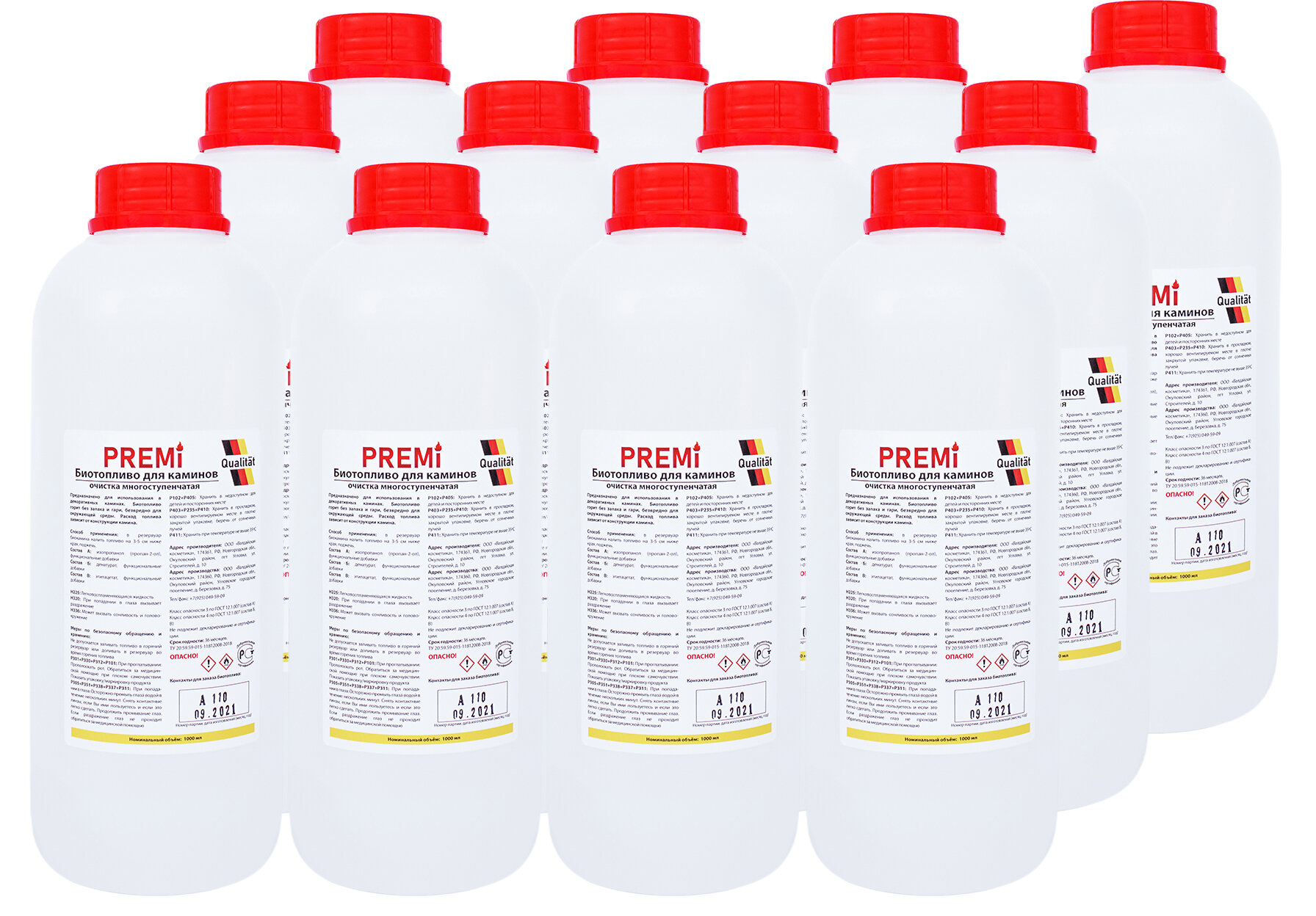 Купить 12 литров / Биотопливо / Топливо для биокамина PREMI / Многоступенчатая очистка / 12 бутылок по 1 литру