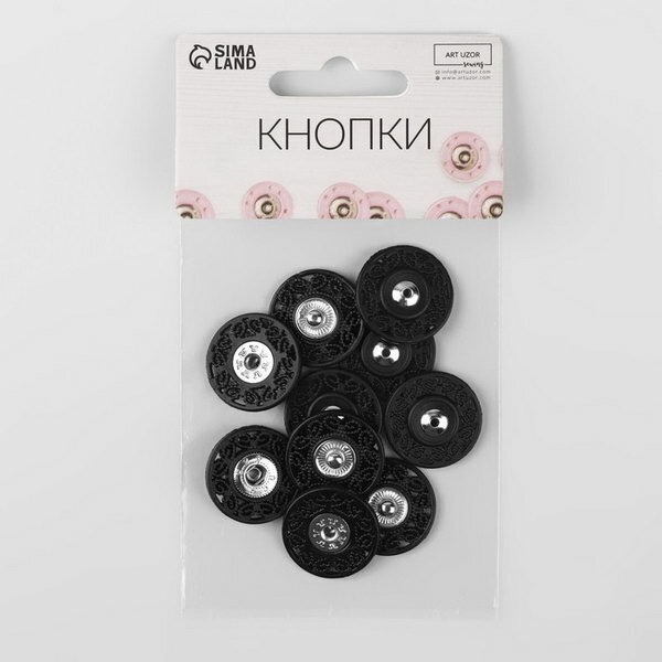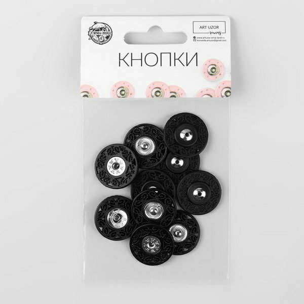 Арт Узор Кнопки пришивные, d 12 мм, 36 шт, цвет чёрный