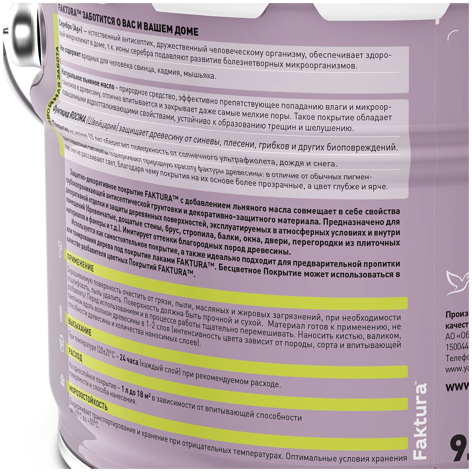 Faktura / Фактура покрытие защитно-декоративное с льняным маслом, ионами серебра, сосна 9 л