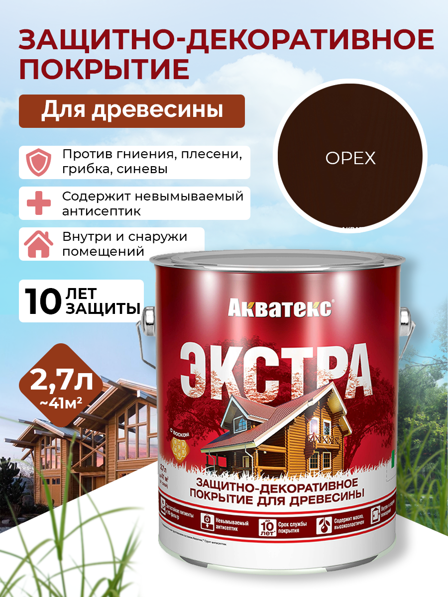 Акватекс Акватекс-Экстра защитно-декоративное покрытие для древесины алкидное полуглянцевое орегон 2,7л