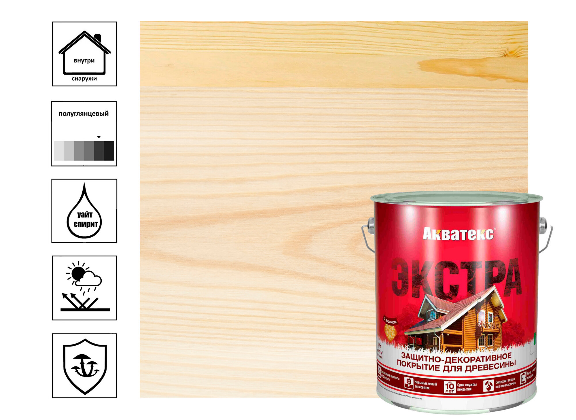 Акватекс Акватекс-Экстра защитно-декоративное покрытие для древесины алкидное полуглянцевое бесцветный 2,7л