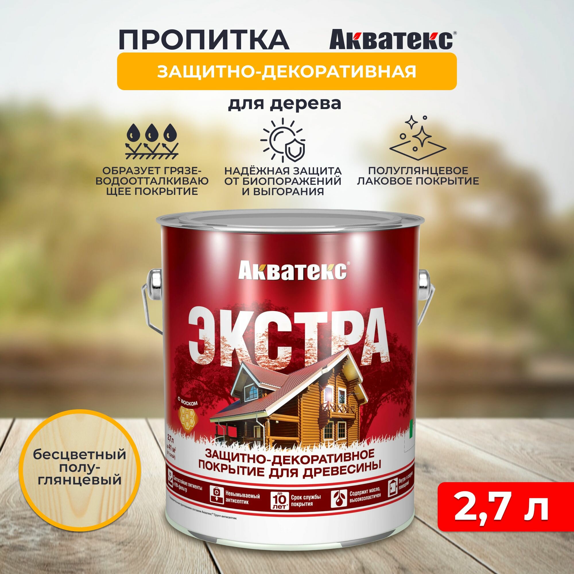 Защитно-декоративная пропитка по дереву Акватекс экстра для внутреннего и наружного применения Бесцветный 2,7л