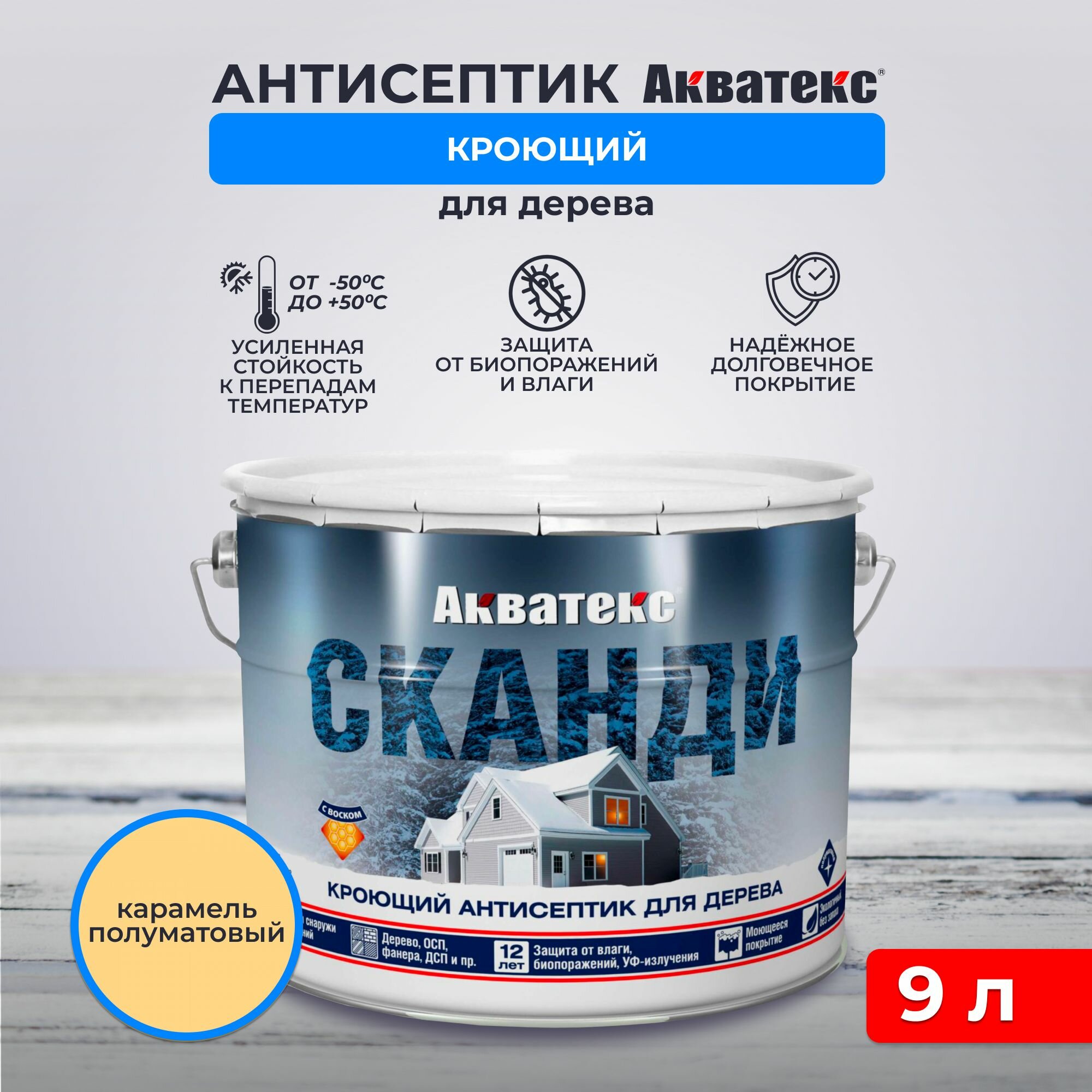 Купить Акватекс Сканди - антисептик для древесины кроющий акриловый полуматовый, карамель (9 л)
