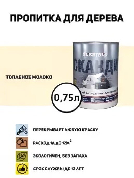 Акватекс сканди кроющий антисептик, топленое молоко, 0,75 л