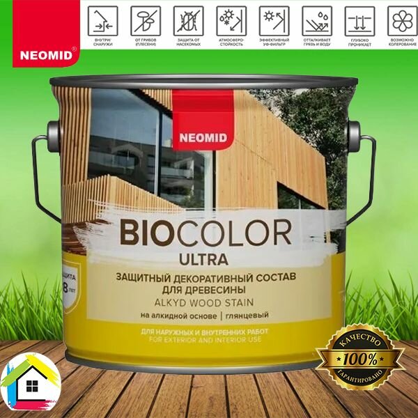 Декоративная Пропитка для Древесины Neomid Biocolor Ultra 2.7л Бесцветный Полуглянцевая с Усиленной Защитой / Неомид Био Колор Ультра.