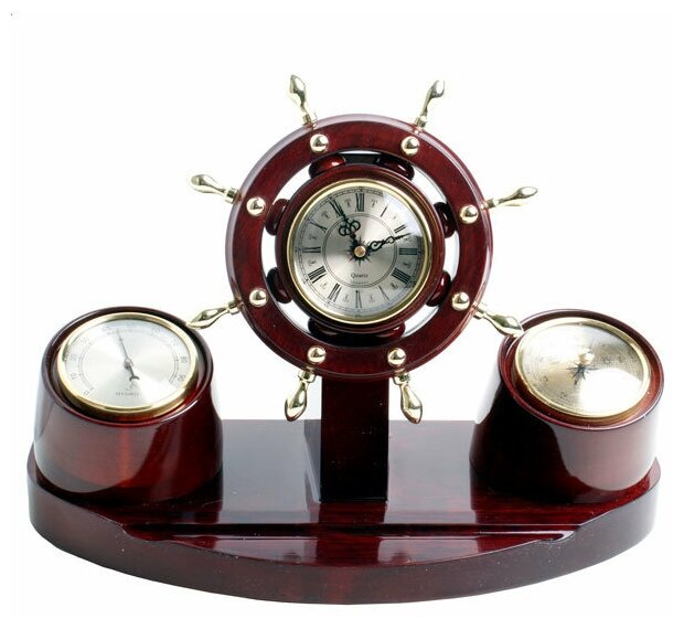 Купить Балаково Настольная метеостанция Н-32 в виде штурвала (часы, барометр, термометр)