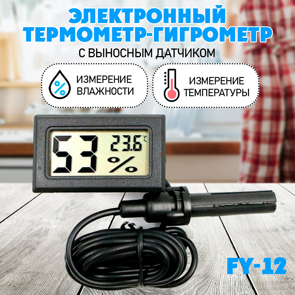 Термометр-гигрометр электронный, FY12 , ЖК дисплей с выносным датчиком интересное: