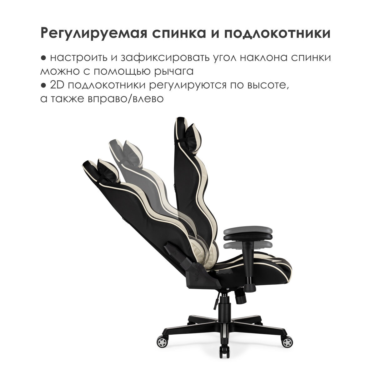 Кресло игровое Racer, Цвет обивки: бежевый, черный, Цвет корпуса: бежевый, черный