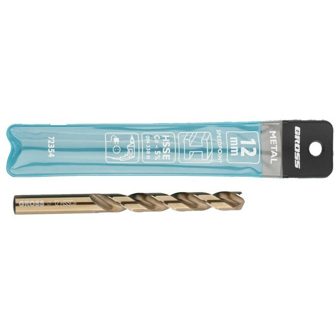 Сверло спиральное по металлу, 12мм, HSS-Co Gross (72354)