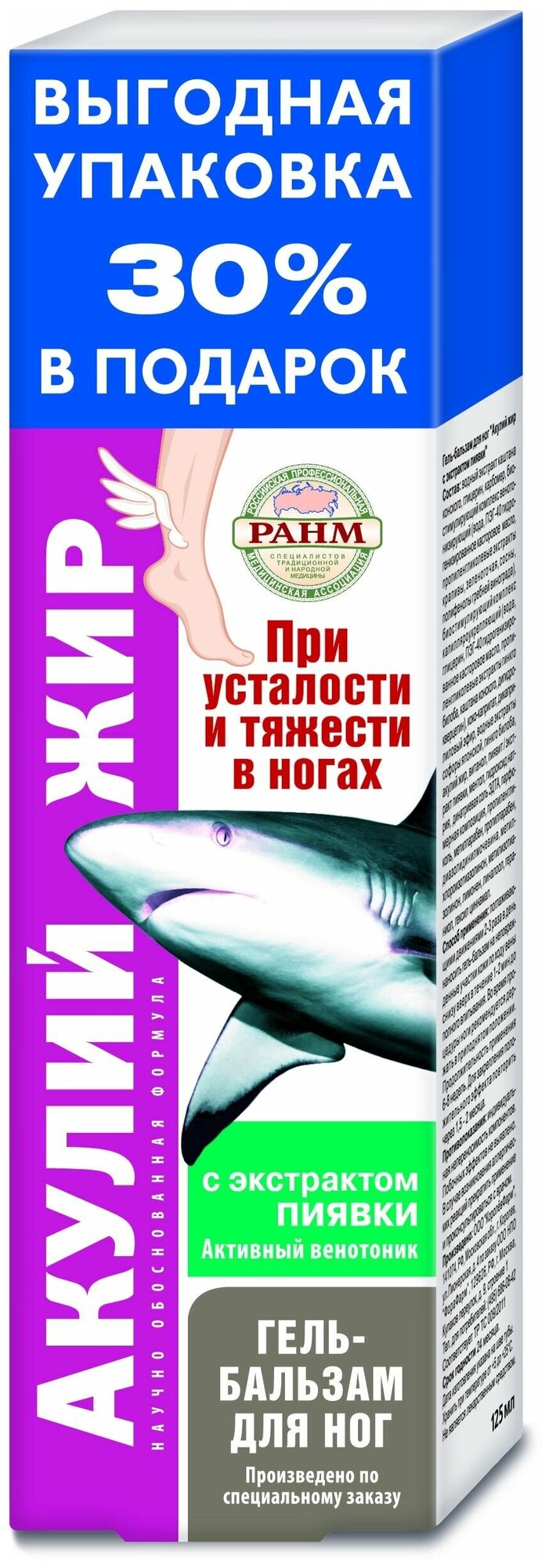 Акулий жир с экстрактом пиявки гель-бальзам д/ног, 125 мл