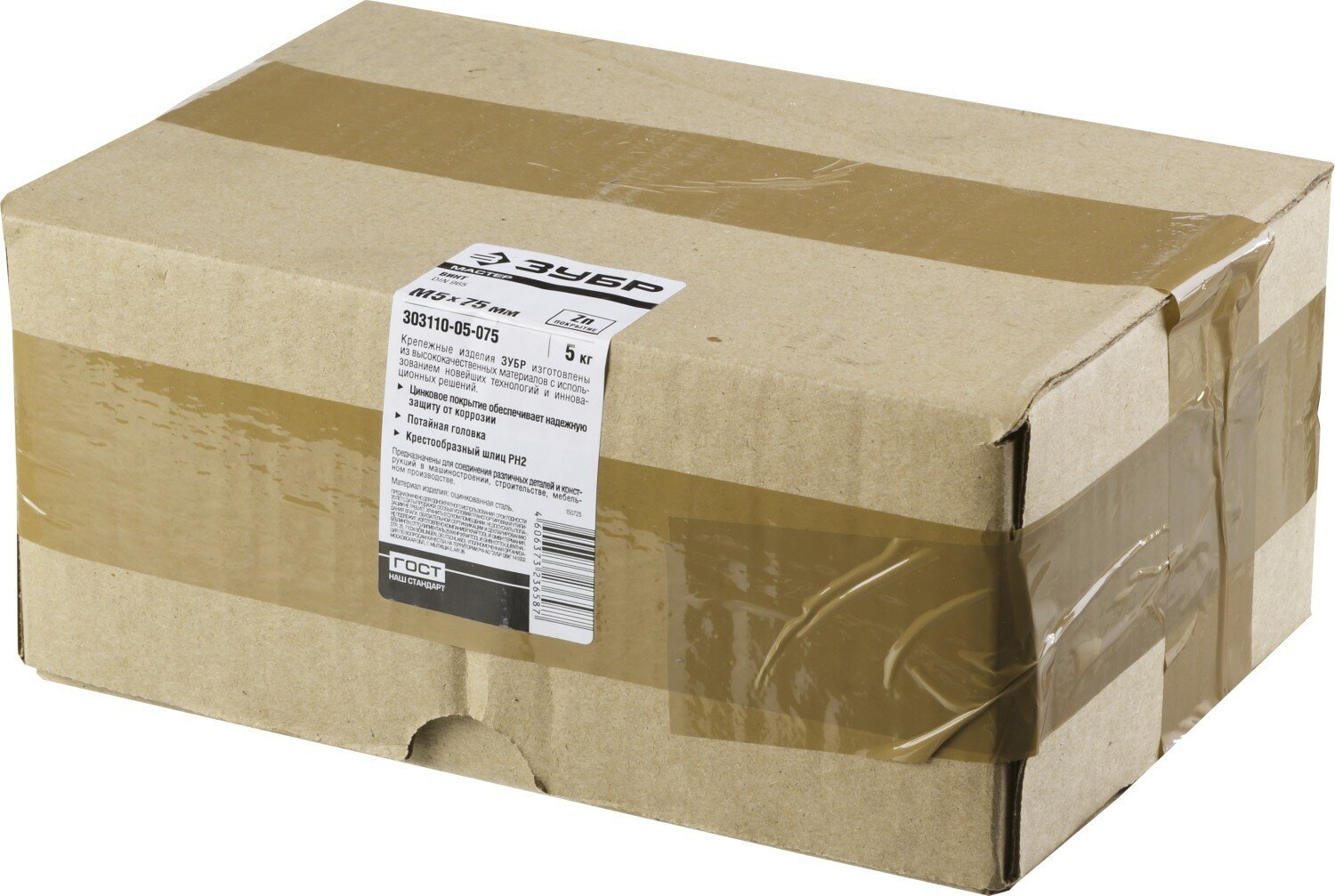 ЗУБР DIN 965, кл. пр. 4.8, M5 х 75 мм, цинк, 5 кг, винт с потайной головкой (303110-05-075)