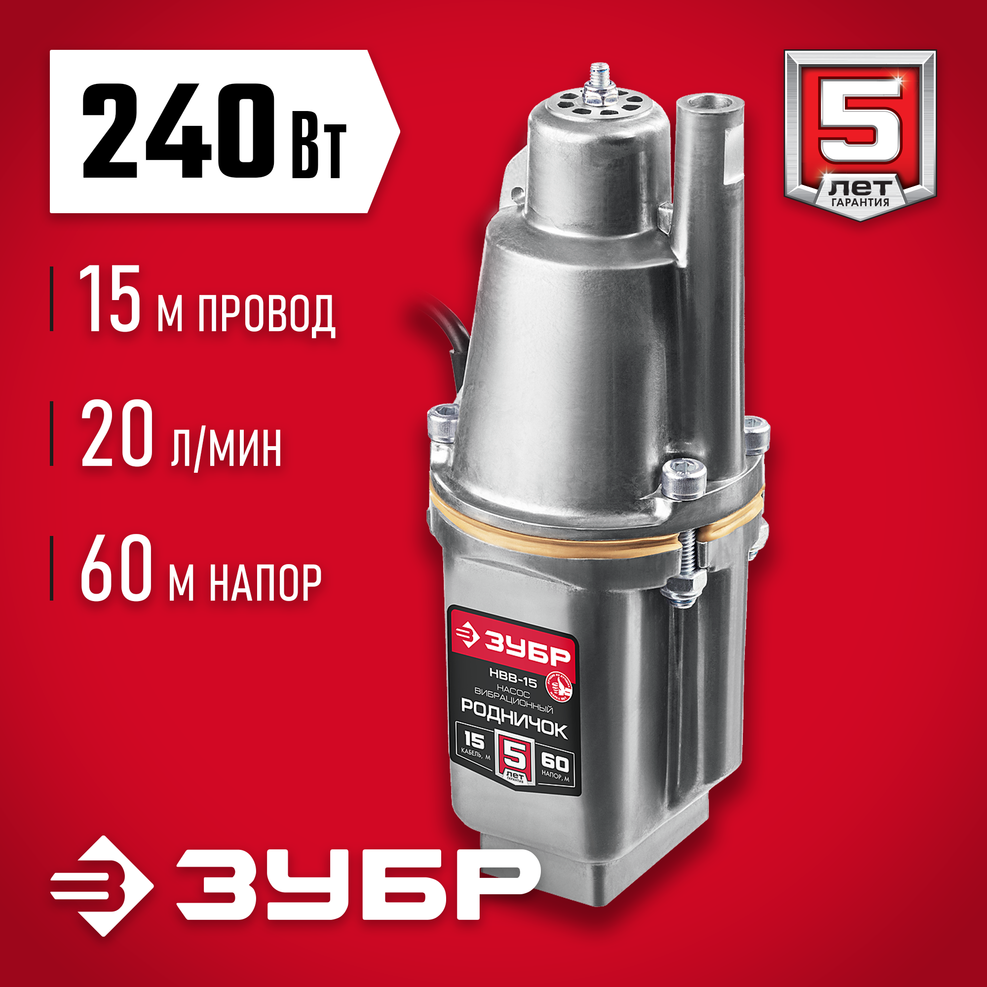 Насос вибрационный "Родничок-В", Зубр серия "мастер", НВВ-15