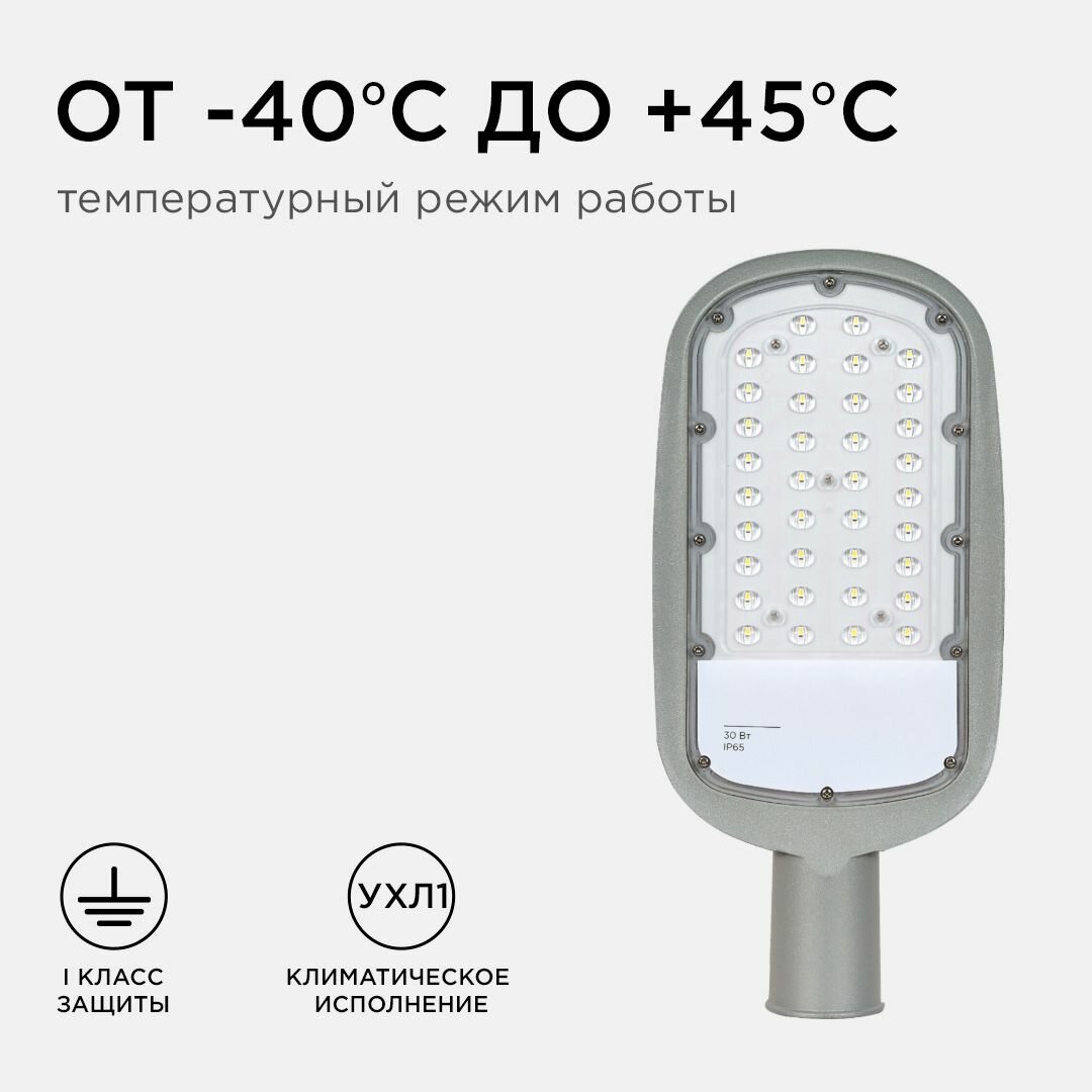 Светодиодный консольный светильник с углом излучения 70х140 / Фонарь с встроенными светодиодами smd2835 / Уличное LED освещение крепится на опоры, мачты, столбы / 5000K / 3300Лм / 30Вт / IP65 / гарантия 3 года / 85-265В / серый, 29-01