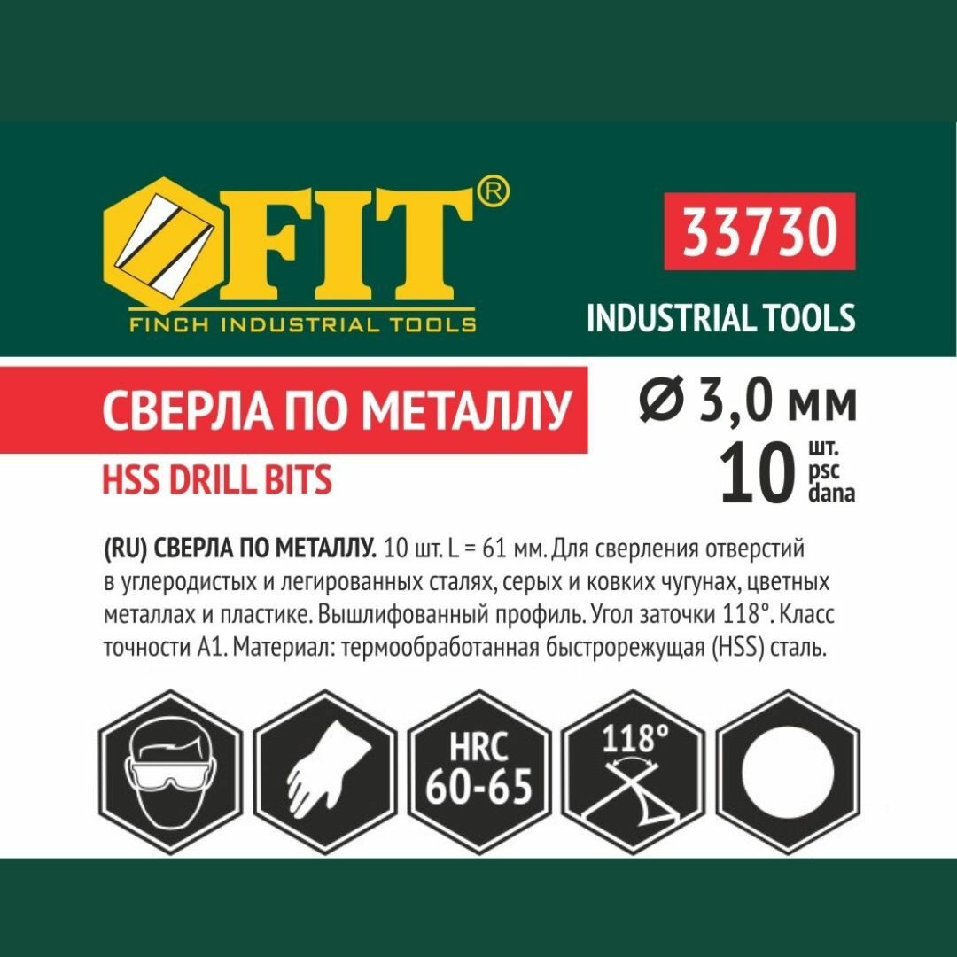 Купить Сверло 10 шт по металлу (3х61 мм, HSS) FIT полированные
