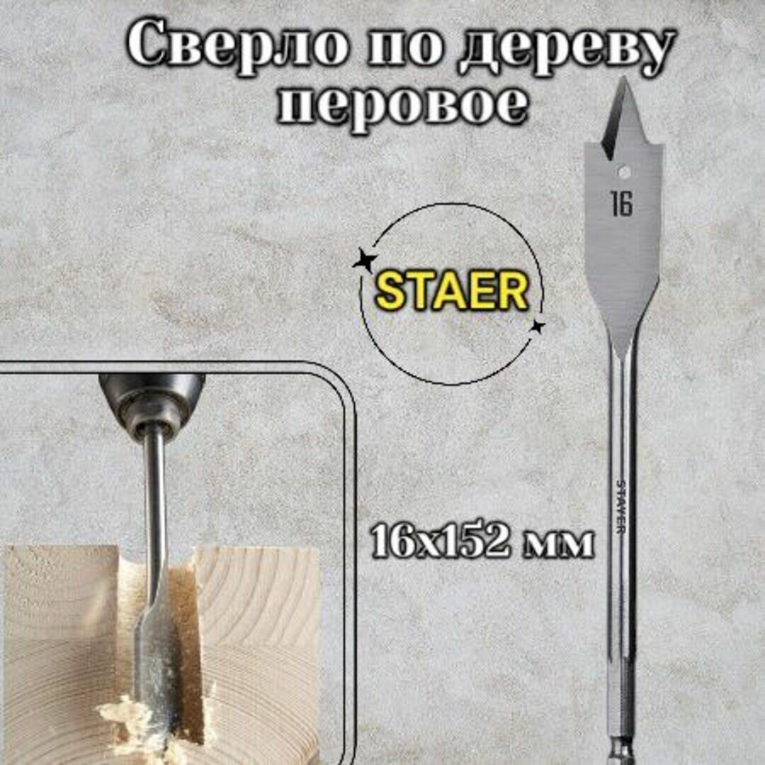 STAYER FLAT 16x152мм, сверло по дереву перовое интересное: