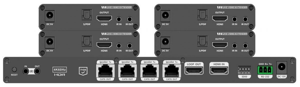 Разветвитель-удлинитель 1 в 4 HDMI, 4K, ИК, CAT6, до 70 метров Lenkeng LKV824P-I Lenkeng LKV824P-I интересное: