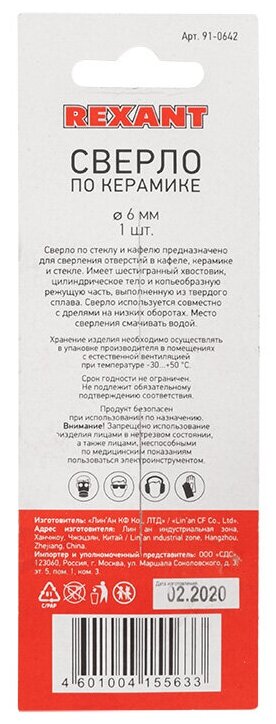 Сверло по стеклу и керамике 6 мм (шестигранный хвостовик) REXANT {91-0642} интересное: