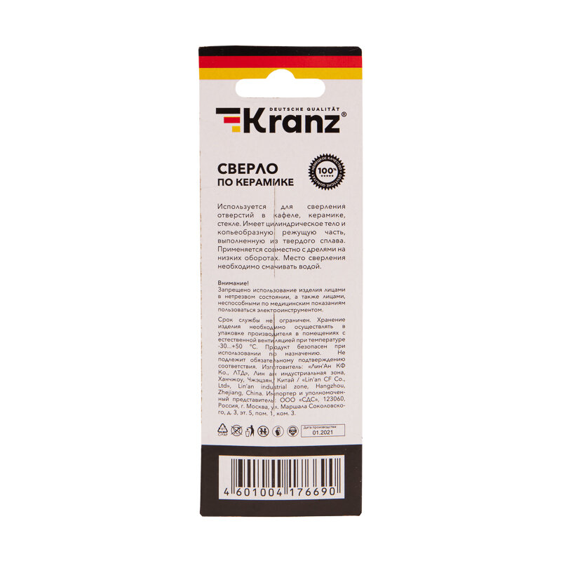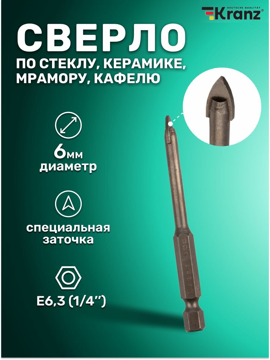 Сверло по стеклу и керамике 6мм (шестигранный хвостовик) Kranz KR-91-0642 интересное: