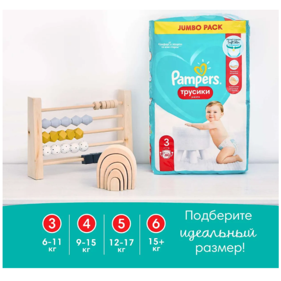 Подгузники-трусики Pampers Pants для малышей 17+ кг, 7 размер, 68 шт