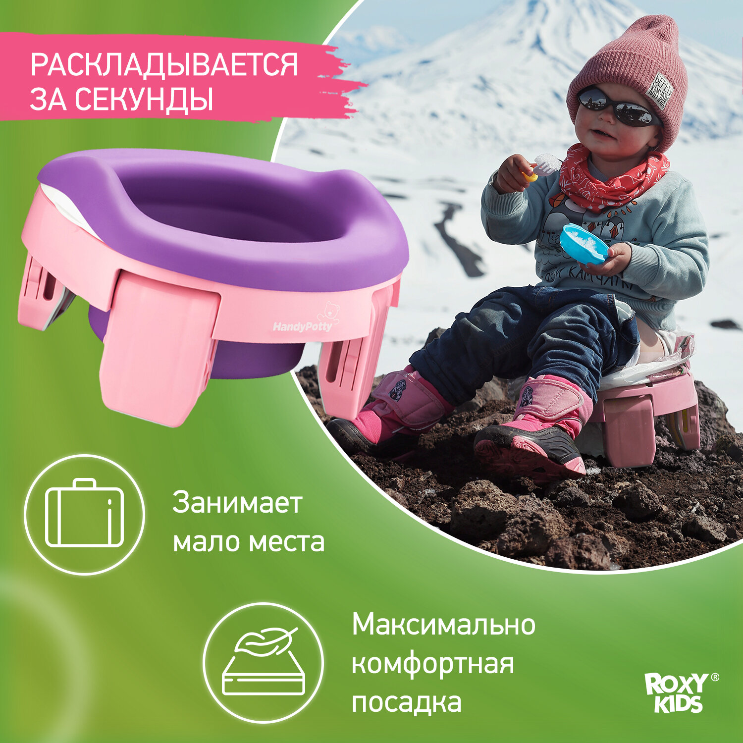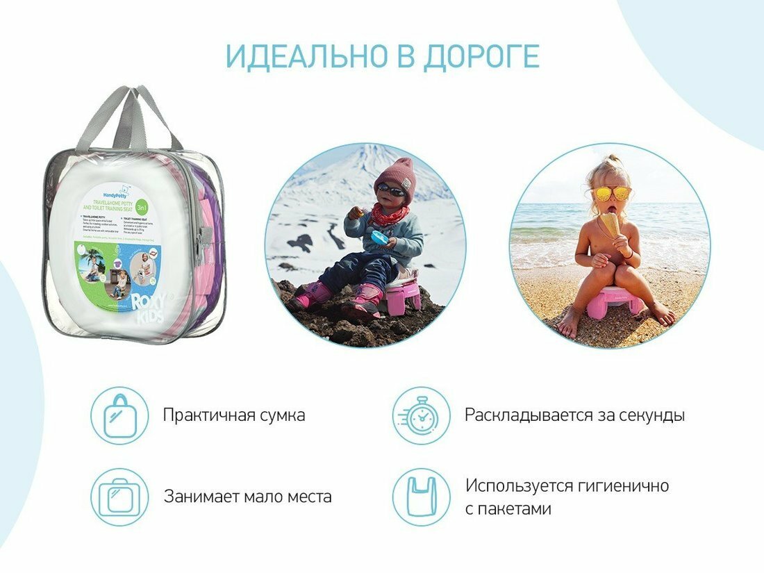 Горшок детский складной дорожный 3в1 для малышей HandyPotty ROXY-KIDS