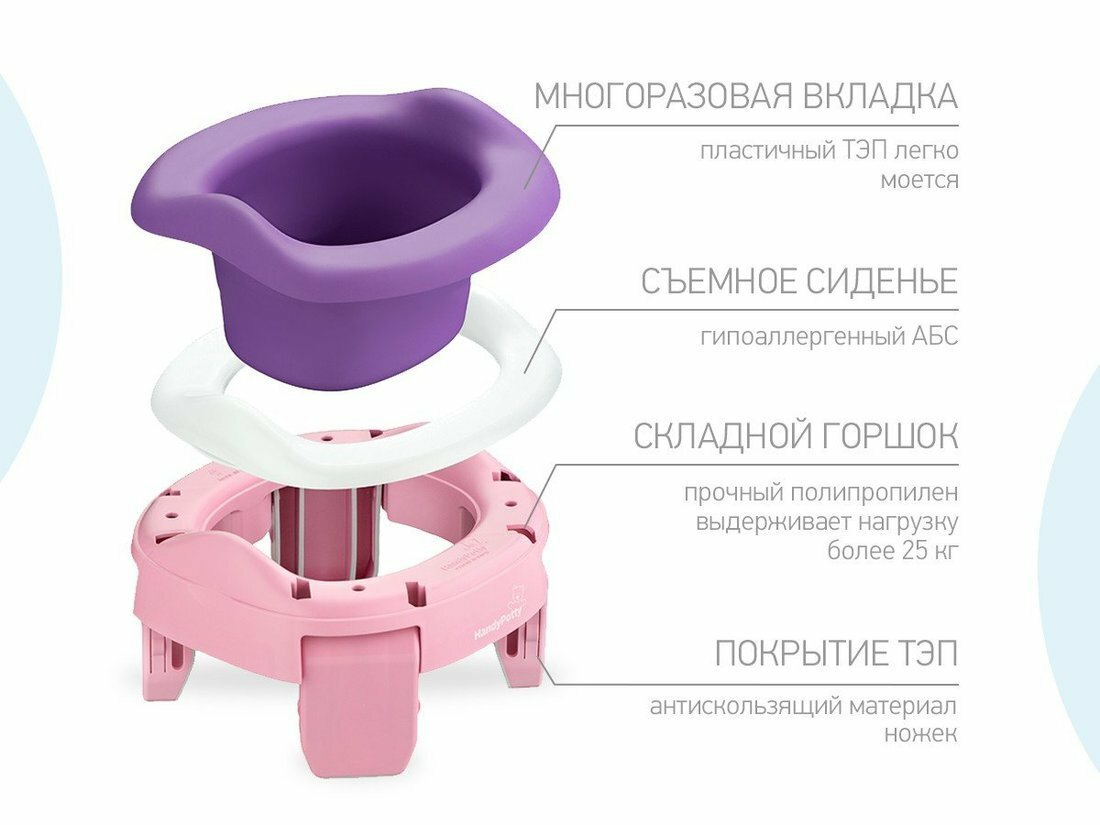 Горшок дорожный складной с многоразовой вкладкой HandyPotty 3 в 1 от ROXY-KIDS, цвет розовый