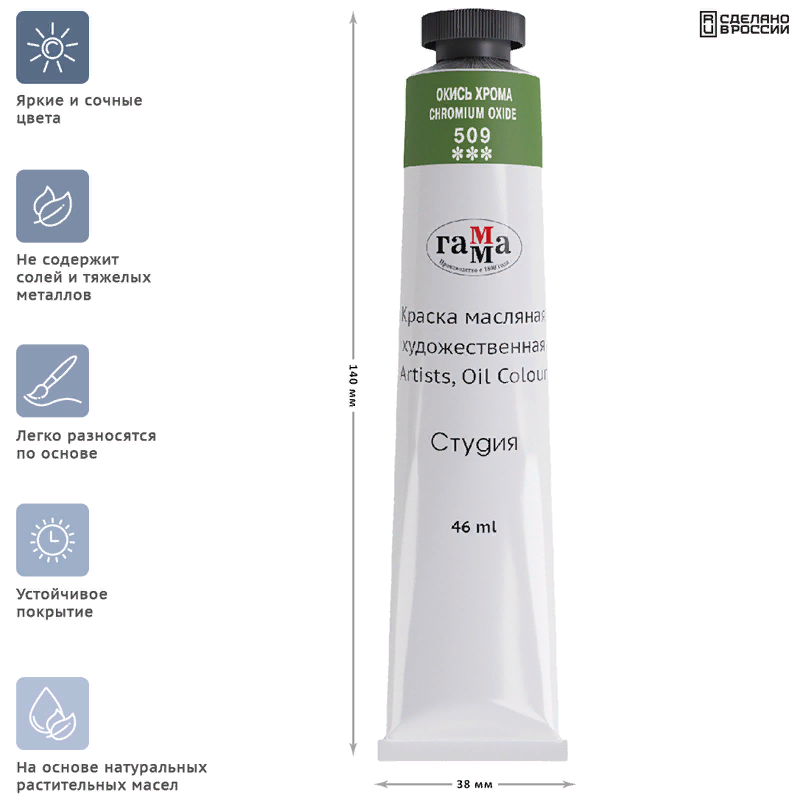Купить Краска масляная в тубе 46 мл, Гамма "Студия", №509 окись хрома