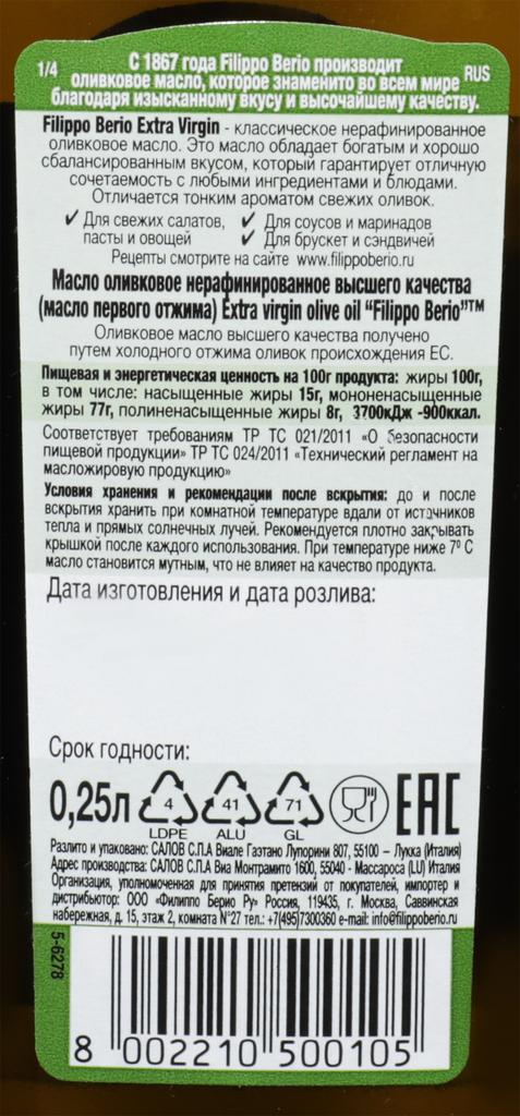 Масло оливковое EV FILIPPO BER - FILIPPO BERIO
