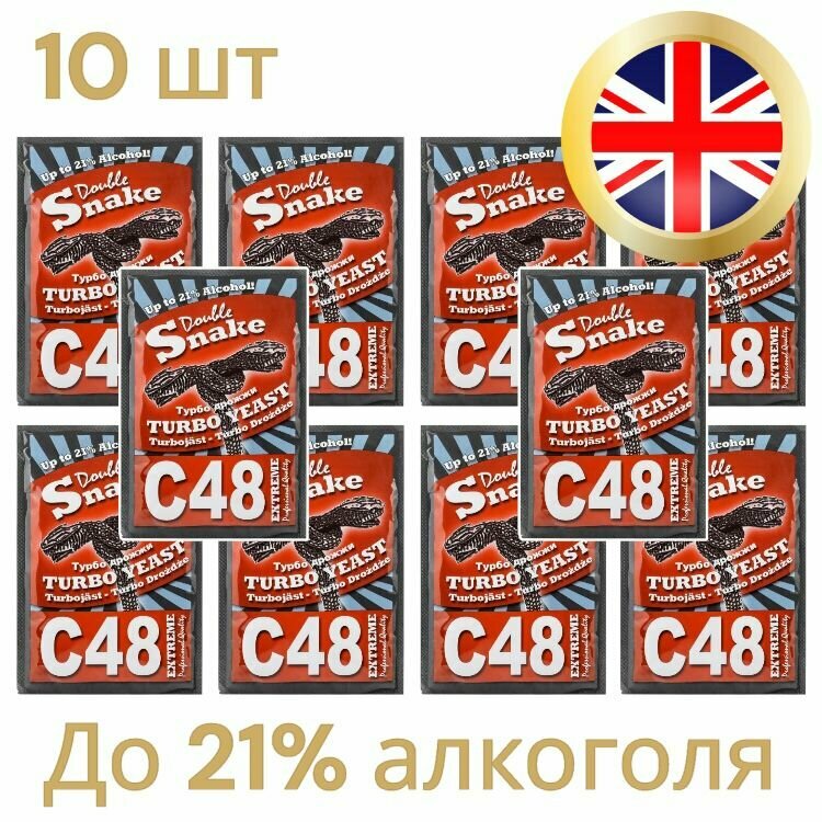 Купить Турбо дрожжи Double Snake C48 (Дабл Снейк С48 спиртовые, 10 штук в комплекте)