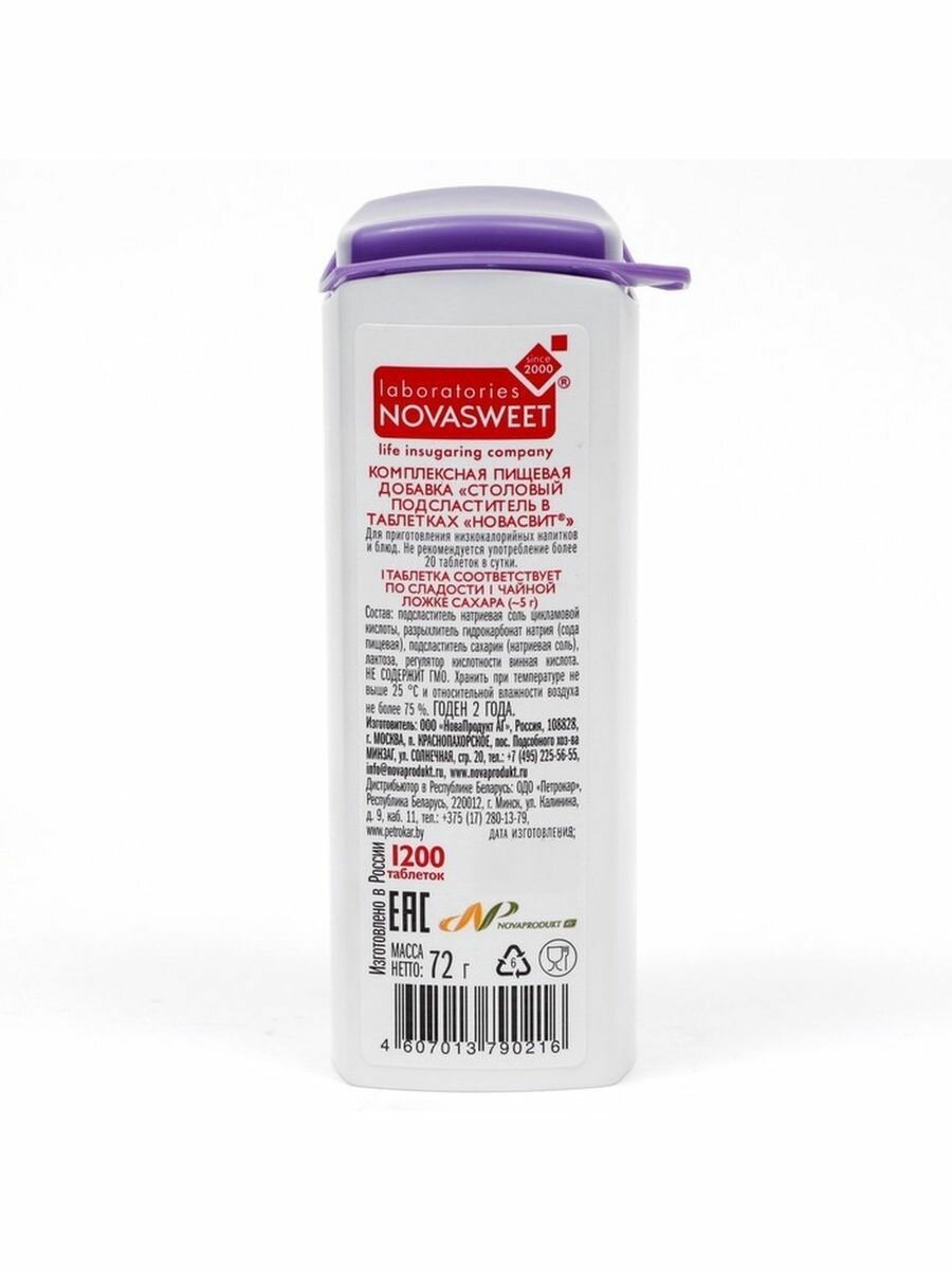 NOVASWEET Сахарозаменитель 0 калорий таблетки, 72 г, 1200 шт. в уп.