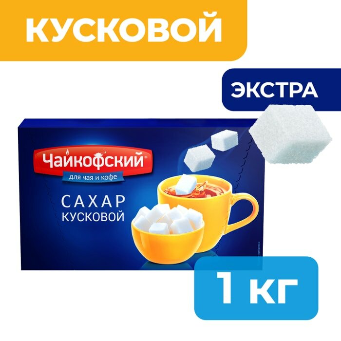 Сахар-рафинад "Чайкофский", 1 кг (196 кусочков, 15х16х21 мм), высший сорт по госту, картонная упаковка В комплекте: 1шт.