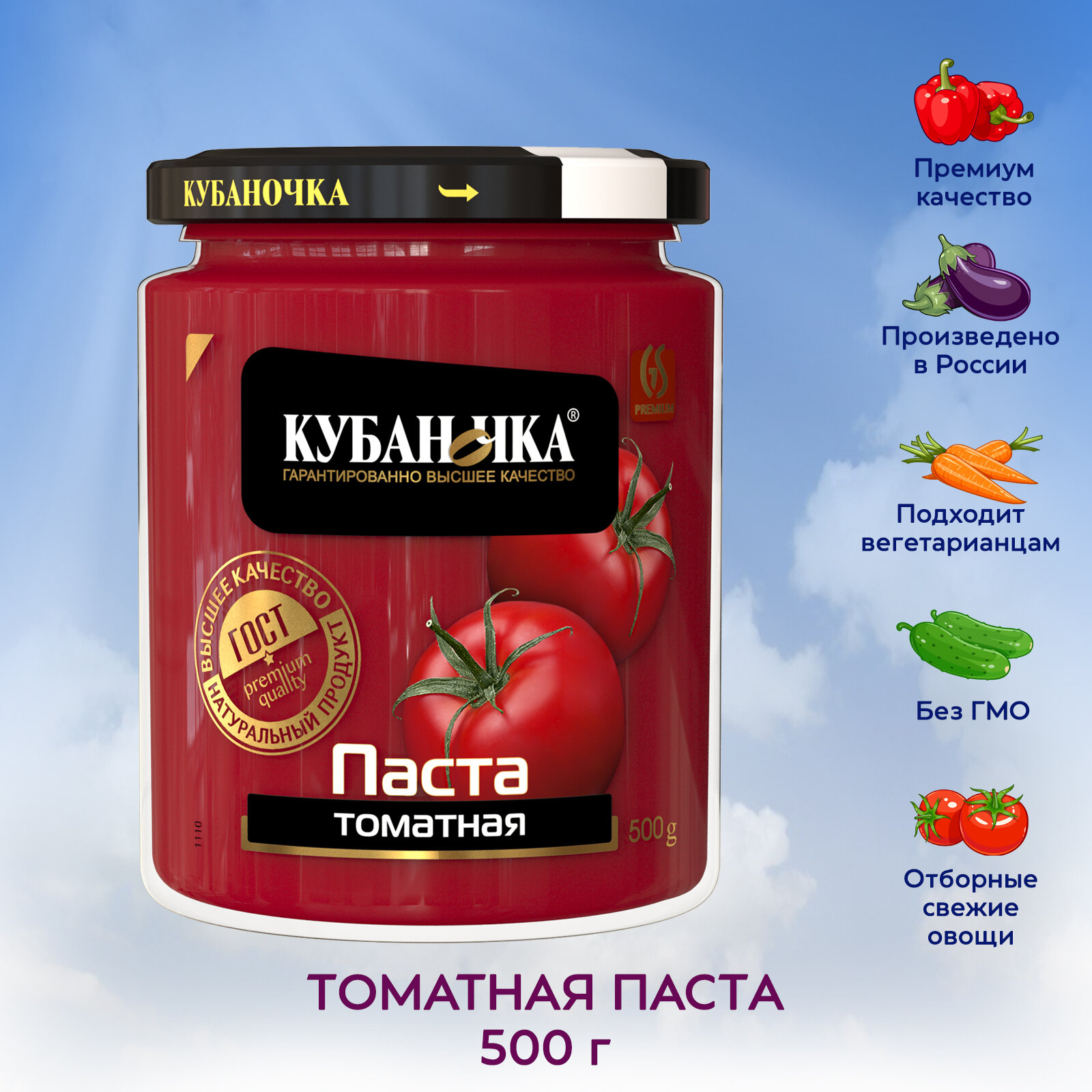 Кубаночка Томатная паста, стеклянная банка, 500 г, 500 мл