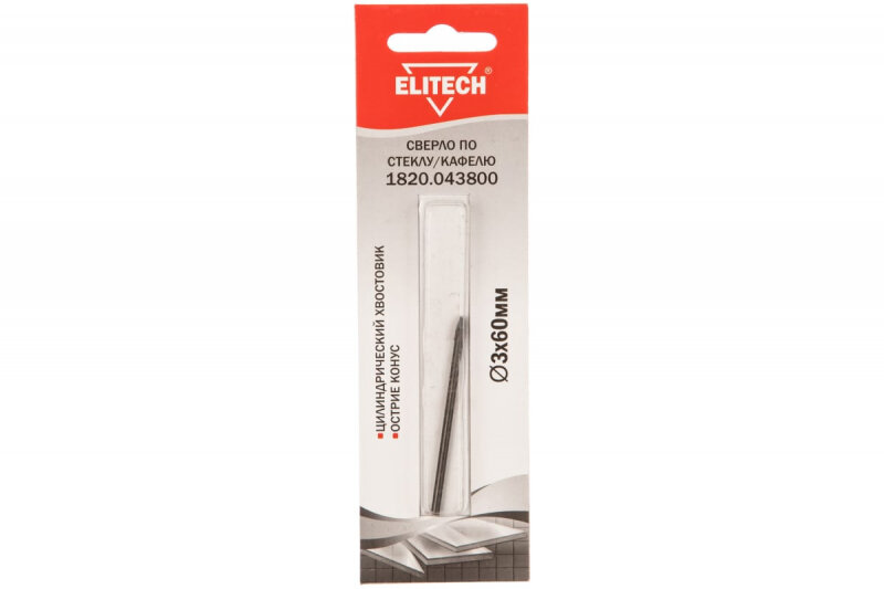 Купить Сверло Elitech 1820.043800 по каф/стекл Д=3мм Дл=60мм (1пред.) для дрелей