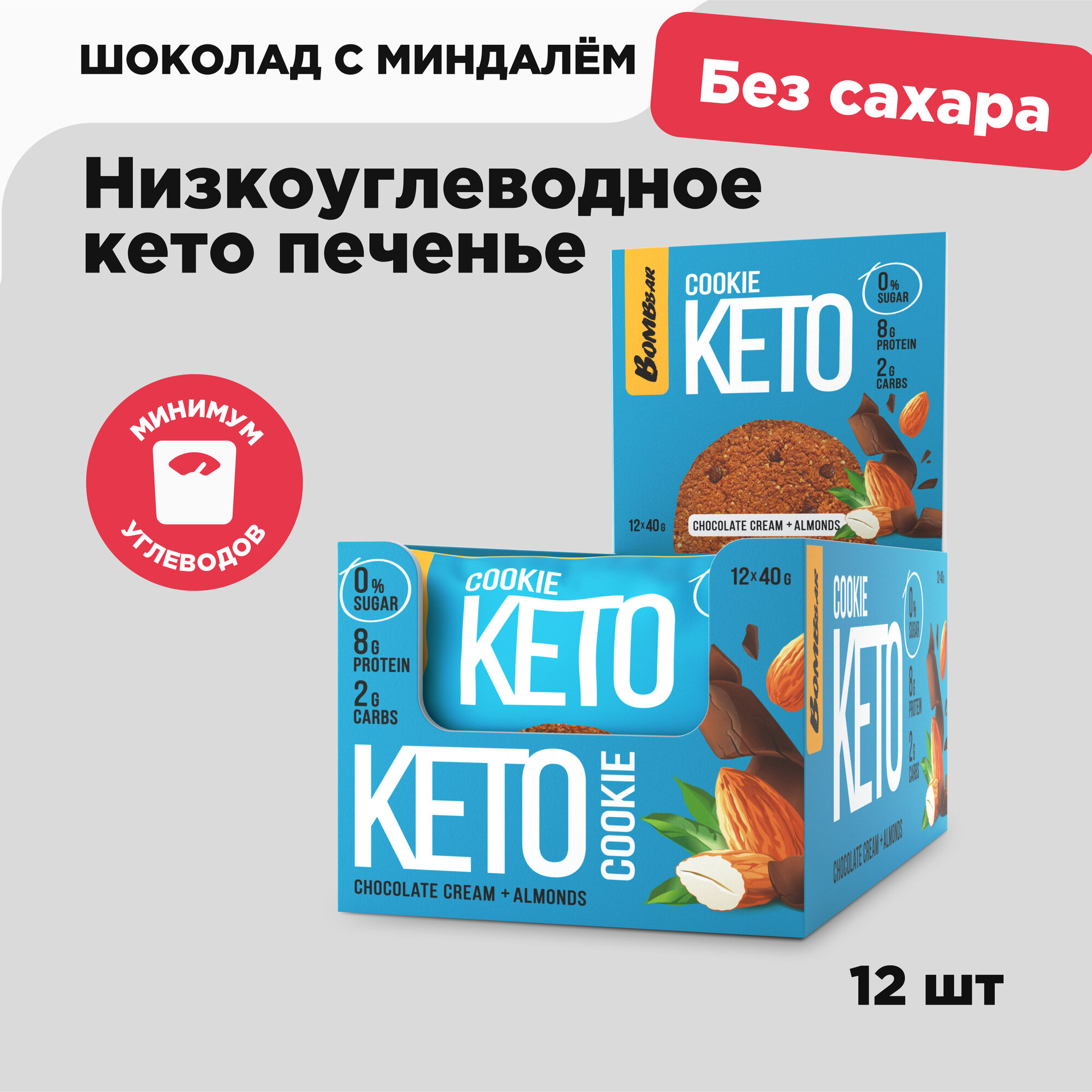 Купить BombBar Протеиновое печенье без сахара кето "Шоколад - Миндаль" 12шт х 40 г