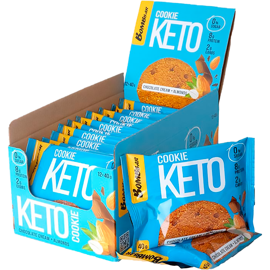 Bombbar, Печенье Keto Cookie, упаковка 12шт по 40г (Шоколадный крем и миндаль)