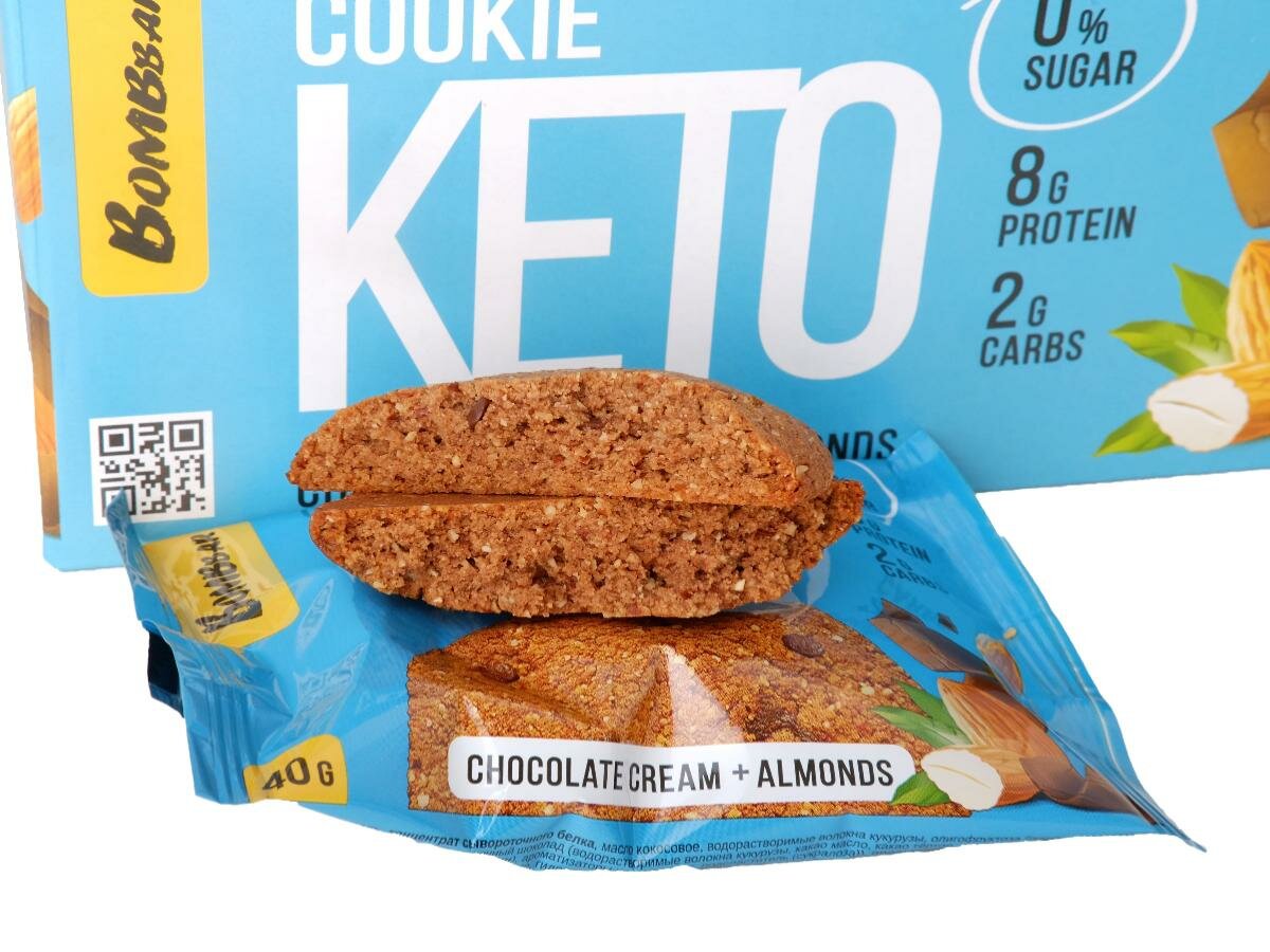Протеиновый батончик Bombbar Кето печенье COOKIE KETO 40 г, Со вкусом шоколадного крема и миндаля