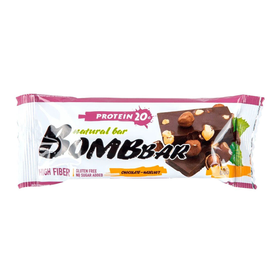 Батончики протеиновые без сахара Bombbar, 20 шт по 60 г, вкус: шоколад-фундук