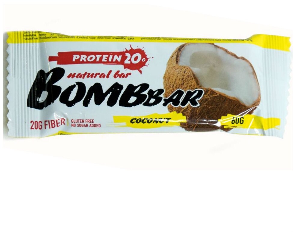 Протеиновый батончик BOMBBAR Protein Bar, Кокос (20шт по 60г)