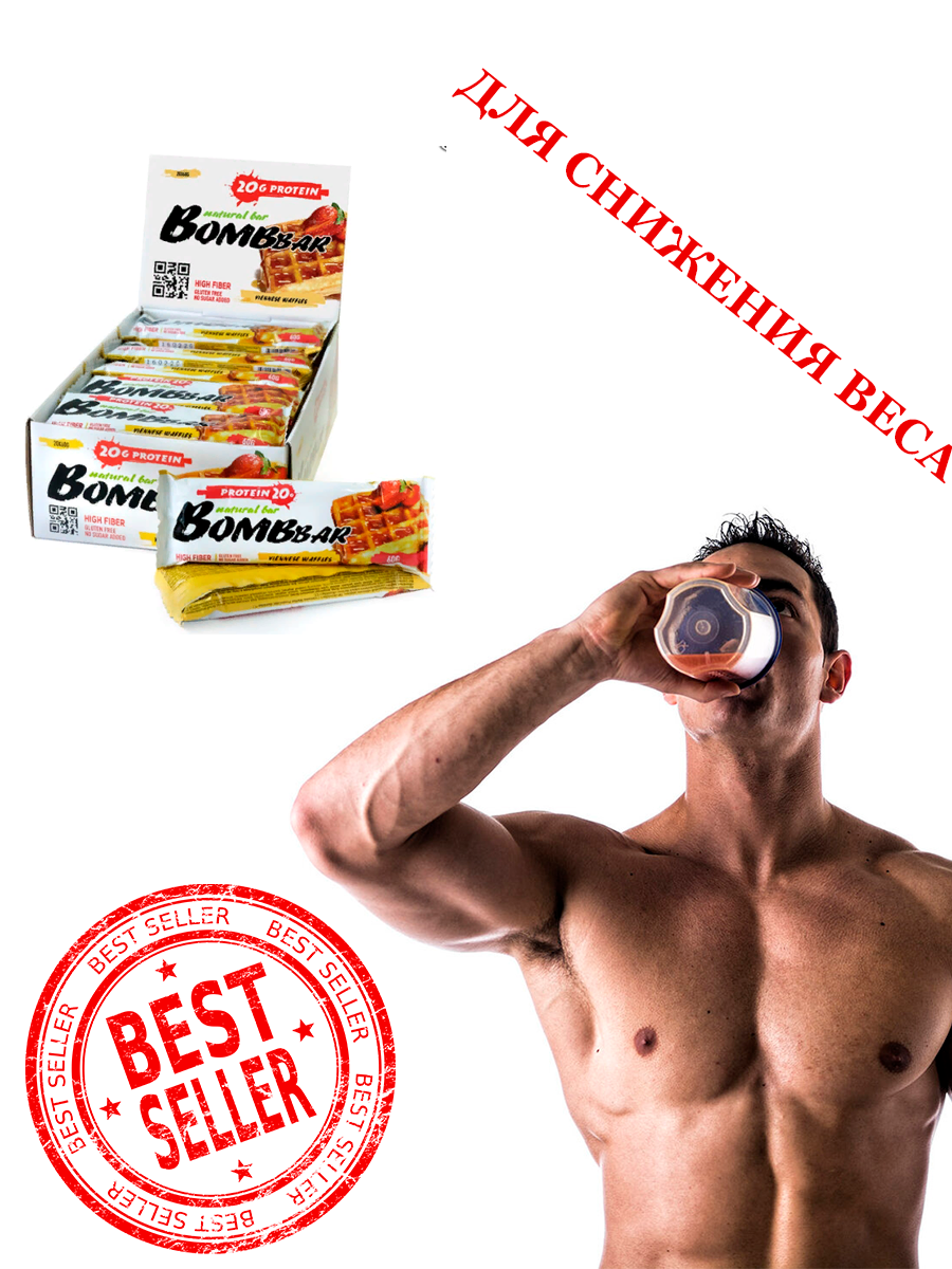 Протеиновый батончик BOMBBAR Protein Bar, Венские вафли (20шт по 60г)
