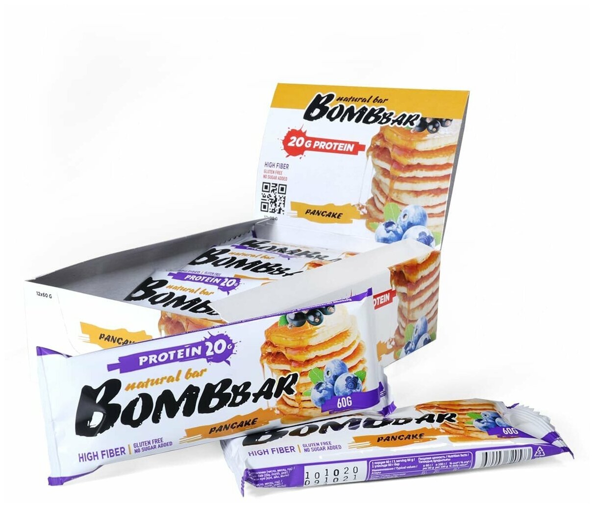 Протеиновый батончик BOMBBAR Protein Bar, Смородиново-черничный панкейк (20шт по 60г)