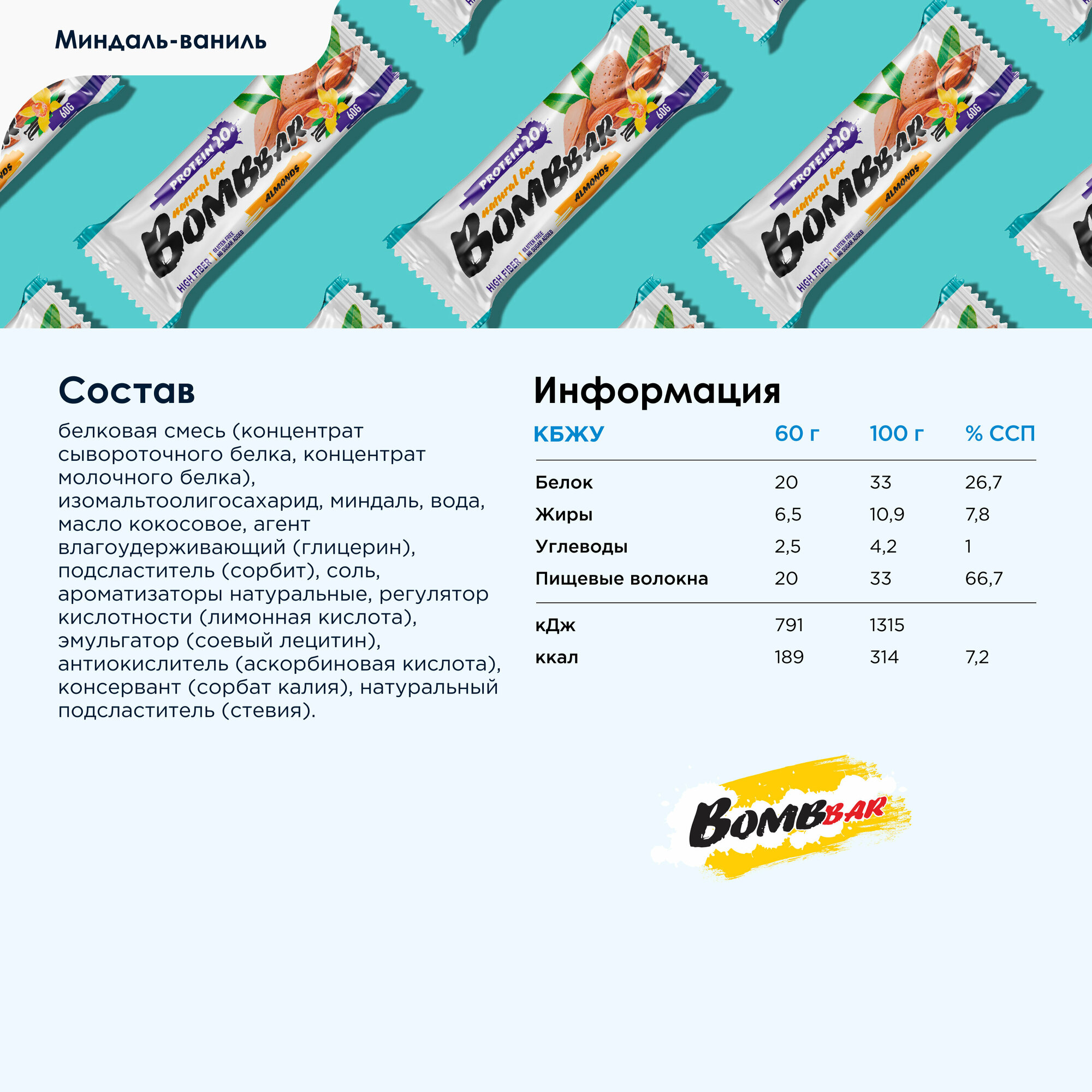 Батончик "BOMBBAR" миндаль-ваниль 60гр*20шт