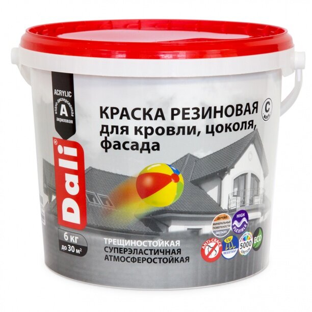 Краска Резиновая Dali 6кг Белый для Кровли, Цоколя, Фасада Суперэластичная / Дали Резиновая.