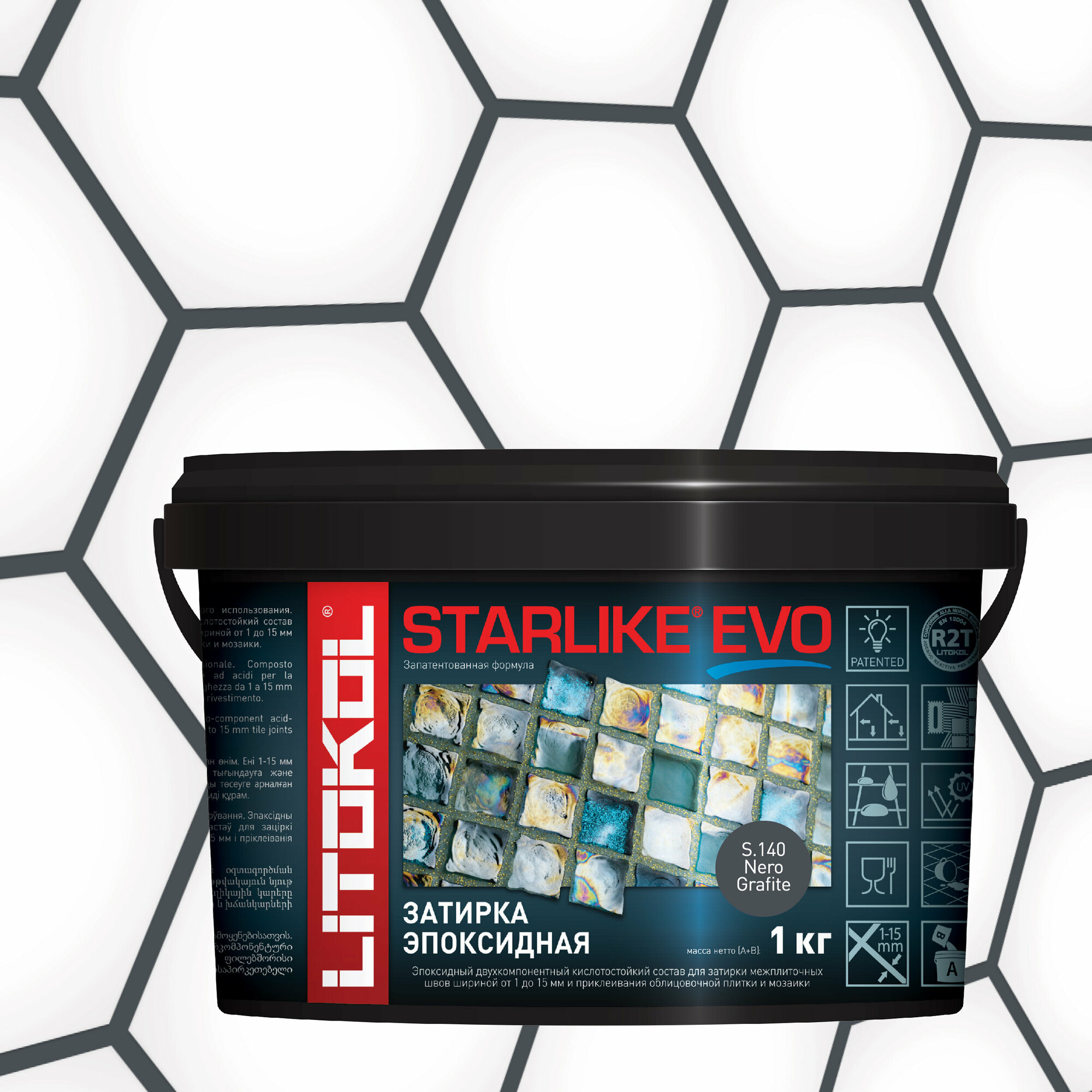 Купить Затирка для плитки эпоксидная LITOKOL STARLIKE EVO (старлайк ЭВО) S.140 NERO GRAFITE, 1кг